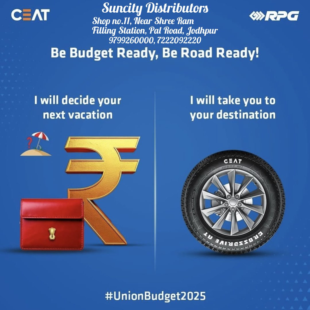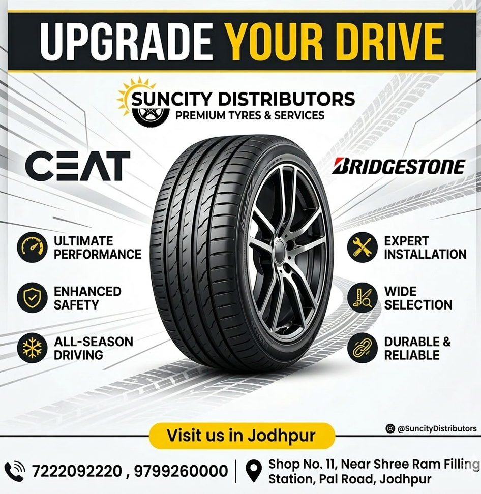 For over 70 years, Suncity Distributors has built a reputation for excellence and trust within the tyre industry in Jodhpur. As a premier CEAT Shoppe, we offer a comprehensive range of products and services, including new and used tyres, wheel alignment, and repair services. Their state-of-the-art facility is equipped with the latest technology for tyre changing, wheel balancing, and nitrogen filling, ensuring every customer receives exceptional service. Beyond just a tyre store, we are committed to providing an international standard of quality and ethical service to the local community.. We deal in brands like Ceat, Bridgestone, Michelin, Pirelli and Maxxis.